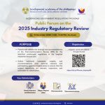 Be instrumental in bringing about regulatory reform! Join the Development Academy of the Philippines โ Modernizing Government Regulations Programโs ๐ฎ๐ฌ๐ฎ๐ฑ ๐ฅ๐ฒ๐ด๐๐น๐ฎ๐๐ผ๐ฟ๐ ๐ฅ๐ฒ๐๐ถ๐ฒ๐ ๐ฃ๐๐ฏ๐น๐ถ๐ฐ ๐๐ผ๐ฟ๐๐บ ๐ณ๐ผ๐ฟ ๐๐ต๐ฒ ๐๐ถ๐น๐ถ๐ฝ๐ถ๐ป๐ผ ๐ ๐ถ๐ด๐ฟ๐ฎ๐ป๐ ๐๐ฎ๐ฏ๐ผ๐ฟ, ๐ฃ๐ต๐ฎ๐ฟ๐บ๐ฎ๐ฐ๐ฒ๐๐๐ถ๐ฐ๐ฎ๐น, ๐ง๐ฒ๐น๐ฒ๐ฐ๐ผ๐บ๐บ๐๐ป๐ถ๐ฐ๐ฎ๐๐ถ๐ผ๐ป๐, ๐ฎ๐ป๐ฑ ๐ฆ๐ฒ๐บ๐ถ๐ฐ๐ผ๐ป๐ฑ๐๐ฐ๐๐ผ๐ฟ๐ ๐ฎ๐ป๐ฑ ๐๐น๐ฒ๐ฐ๐๐ฟ๐ผ๐ป๐ถ๐ฐ๐ ๐ถ๐ป๐ฑ๐๐๐๐ฟ๐ถ๐ฒ๐ on: ๐๐ฎ๐๐ฒ: 19 December 2025 ๐ง๐ถ๐บ๐ฒ: 1:30 PM to 5:00 PM ๐ ๐ผ๐ฑ๐ฒ: Online via Zoom The forum aims to continue reading : 2025 Regulatory Review Public Forum for the Filipino Migrant Labor, Pharmaceutical, Telecommunications, and Semiconductors and Electronic industries