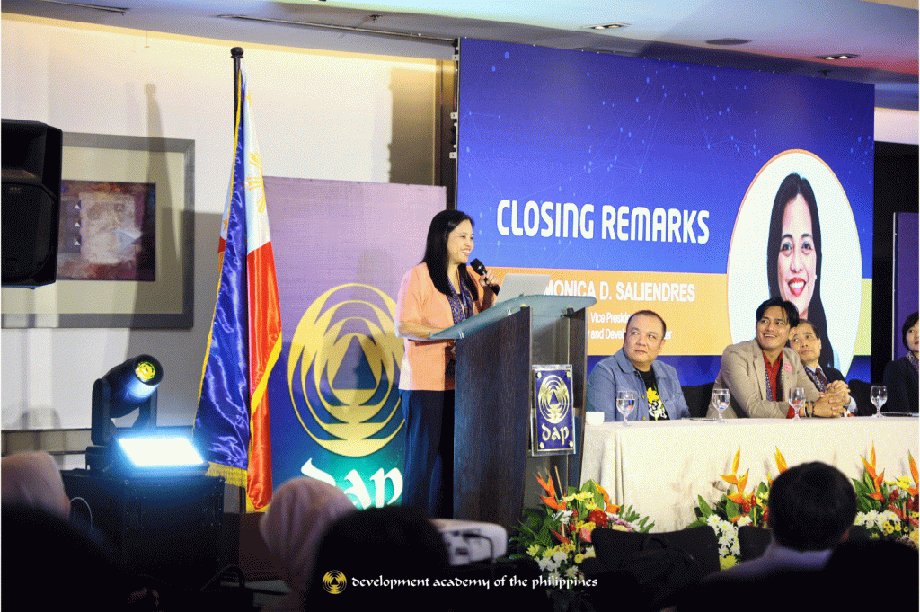 In her closing remarks, Ms. Monica D. Saliendres, DAP Acting Vice President for the Productivity and Development Center, commends the participants for their active engagement and collaborative spirit, emphasizing that digital transformation is a collective journey that relies on collaboration, capacity building, and responsible innovation to create adaptive and inclusive regulatory systems.