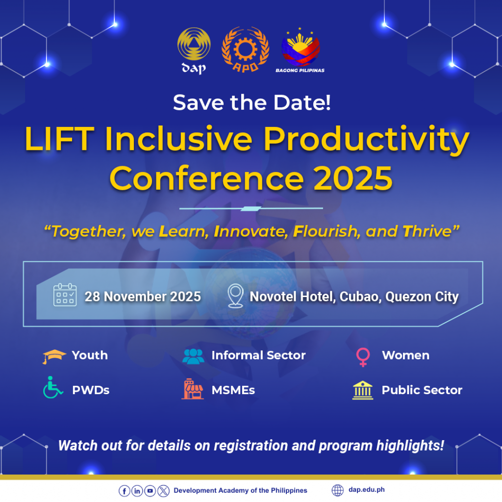 The Development Academy of the Philippines (DAP), through its Productivity and Development Center (PDC), in partnership with the Asian Productivity Organization (APO), proudly presents the LIFT Inclusive Productivity Conference 2025.